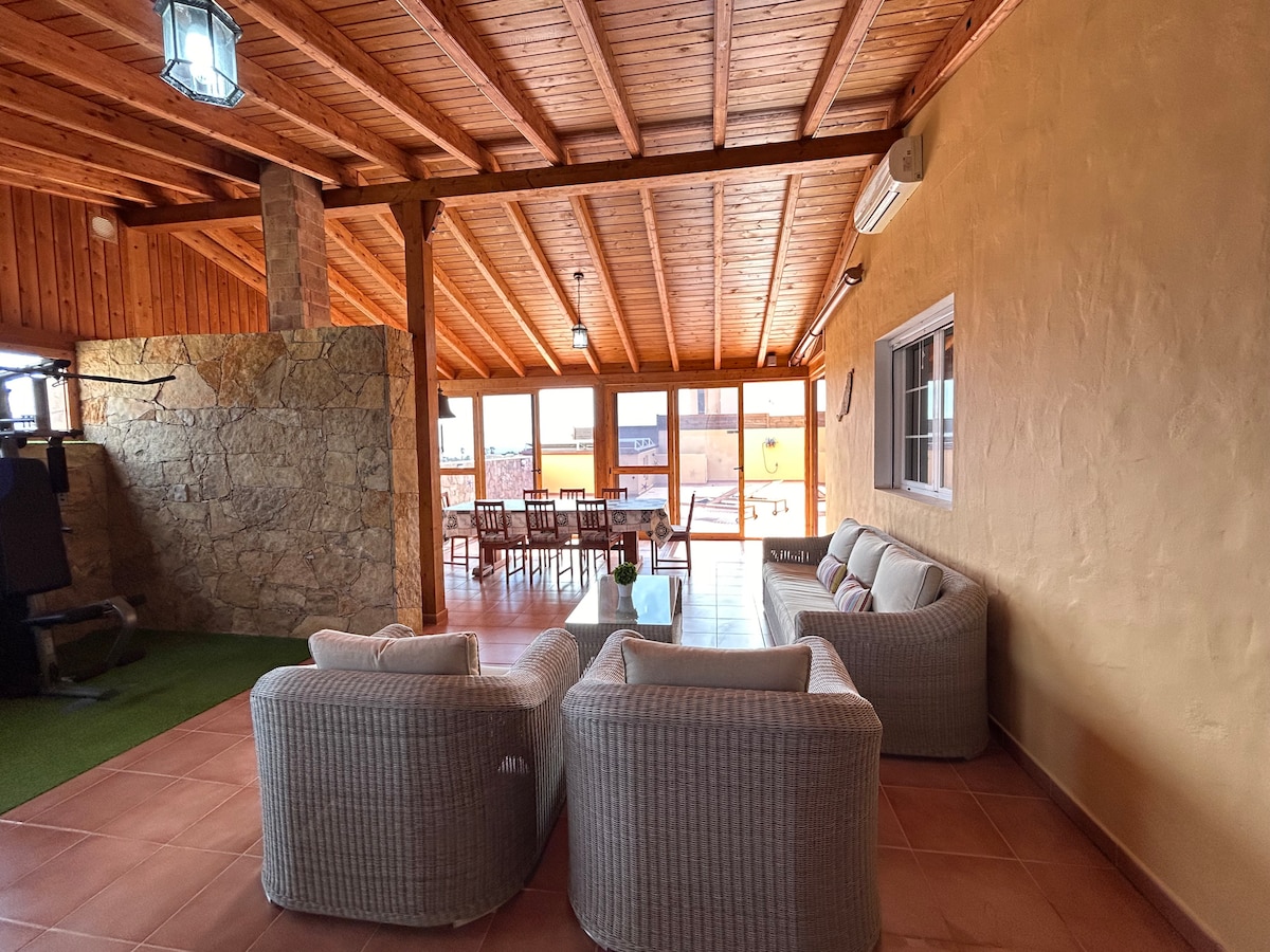 Fallegt hús í boði fyrir langtímabókanir, fullkomið fyrir HEIMILI SKRIFSTOFU einnig (vinnuborð með sjávarútsýni, Trefjar internet). Rúmgóð hönnuð hönnunarvilla með 4 metra hátt til lofts í stofunni. Staðsett í upphækkaðri stöðu í Tarajalejo. Frá veröndinni, með skyggðu svæði þar sem þú getur grillað, hefur þú frábært útsýni yfir hafið. Til að sjá fleiri fallegar myndir af eigninni okkar getur þú leitað að okkur undir „ELVIRA ISASI FUERTEVENTURA ALTERNATIVEHOUSE“!