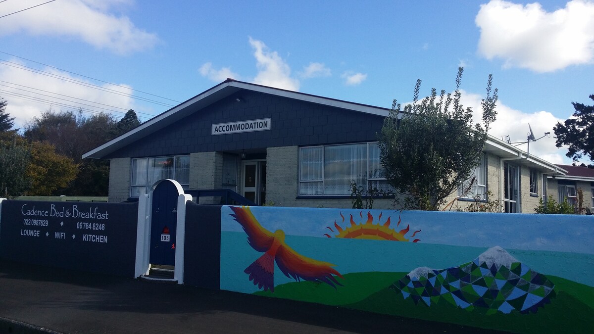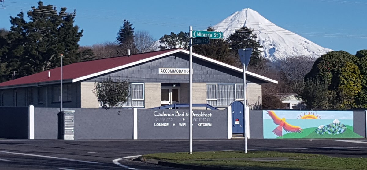 Cadence BnB, an ex-convent, is a 7 bed room, 4 bathroom lodge 20 minutes from Egmont National Park. a continental Breakfast is provided as well as all linen, towels and WIFI shampoo, conditioner and bodywash. Hosts Ross and Rosanne Barker live in the private front part of the residence. You are not staying in their space - only sharing with other guests. A small kitchenette has two hobs, microwave, fridge/freezer, bench top oven, electric frypan but no oven. Pots, pans, plates provided.