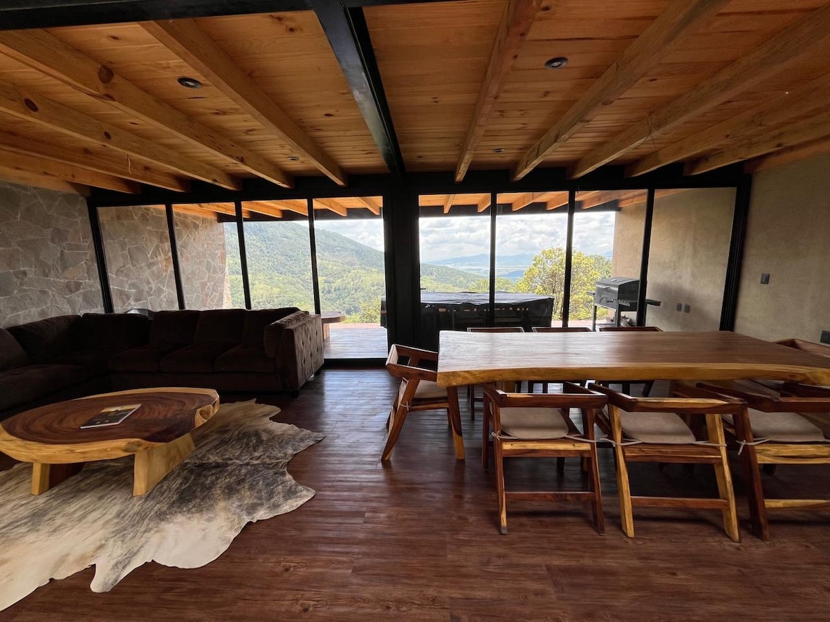 Espléndida cabaña en el bosque con servicios increíbles: * Amplio jardín de 1000 m² con plantas ornamentales y árboles frutales. * Comedor exterior con asador de carbón, chimenea de leña y juegos infantiles. * Sala exterior con fogata de gas y vista a la Presa Brockman. * Jacuzzi techado rodeado de vegetación. * Cuarto de juegos con mesa de billar y air hockey. * A sólo 20 minutos de Tlalpujahua y a 8 de El Oro en coche.