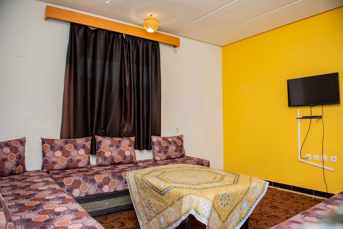 Notaleg Afgo íbúð með mögnuðu útsýni Stökktu út í hjarta Ouarzazate og upplifðu hlýju marokkóskrar gestrisni í heillandi Afgo-íbúðinni okkar. Þetta notalega afdrep er fullkomið fyrir pör, ferðalanga sem eru einir á ferð og fjölskyldur og býður upp á magnað útsýni yfir landslagið í kring. Aðgengi á þaki með mögnuðu útsýni yfir borgina Marokkósk pör þurfa að sýna fram á hjúskaparvottorð sitt.