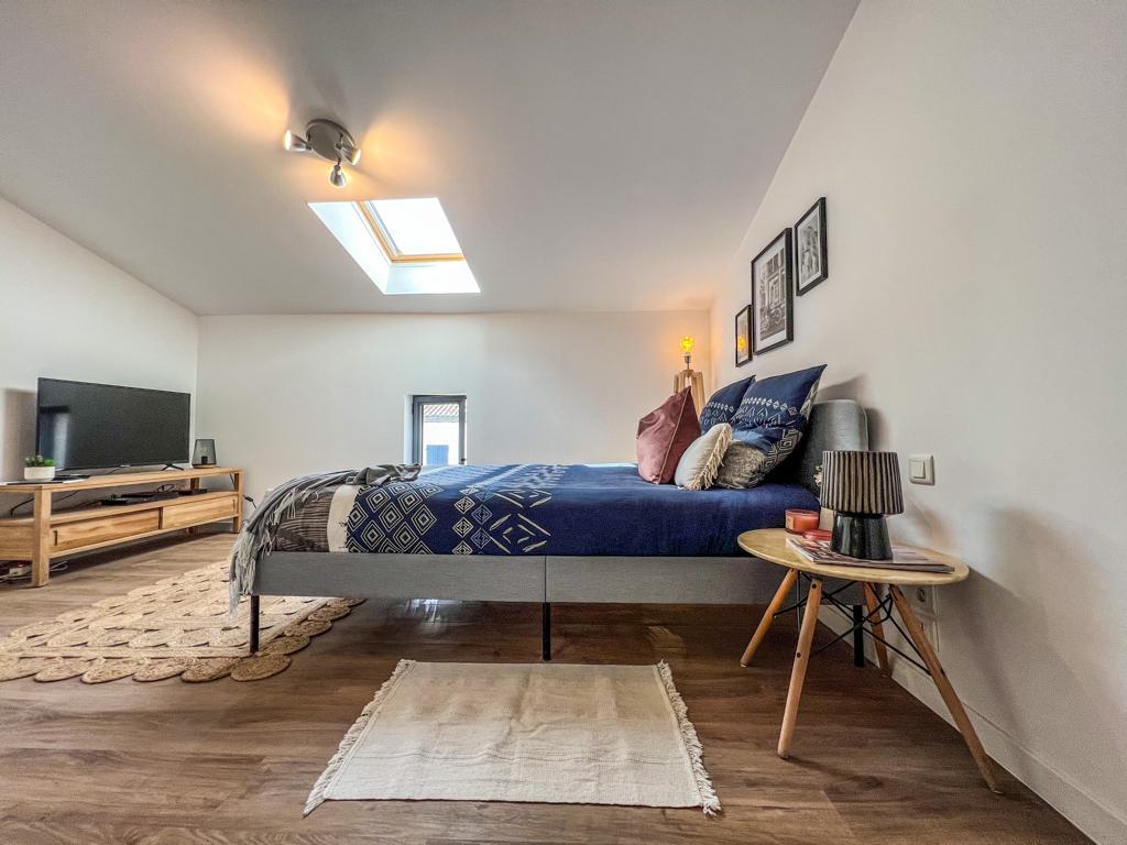 Verið velkomin í heillandi risíbúðina okkar undir þökunum sem er sannkallaður griðastaður sem hangir á milli himins og jarðar. Tilvalið fyrir pör sem eru að leita sér að rómantískri ferð eða fagfólki sem er að leita sér að fríi eftir annasaman dag. Loftíbúðin okkar er staðsett í miðju þorpinu og er umkringd bakaríi, kaffihúsi í hverfinu og superette. Þessi staður er einnig í 10 mínútna akstursfjarlægð frá Golfech.