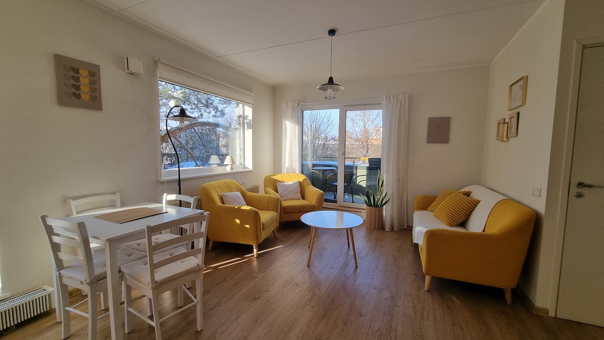 Notalega, rómantíska íbúðin mín er staðsett í hjarta Tartu, við strönd árinnar Emajõgi. Allir staðir borgarinnar, barir/kaffihús og veitingastaðir eru í innan við 5-10 mínútna göngufjarlægð. Orkusparnaðarhúsið og var byggt árið 2020. Þú ert með 60 m2 íbúð í 2 foors með gufubaði og svölum. Eldhús og svefnherbergi 1. hæð og gufubað með rómantísku afslappandi herbergi á 2. hæð . Íbúðin er á 1. hæð hússins.