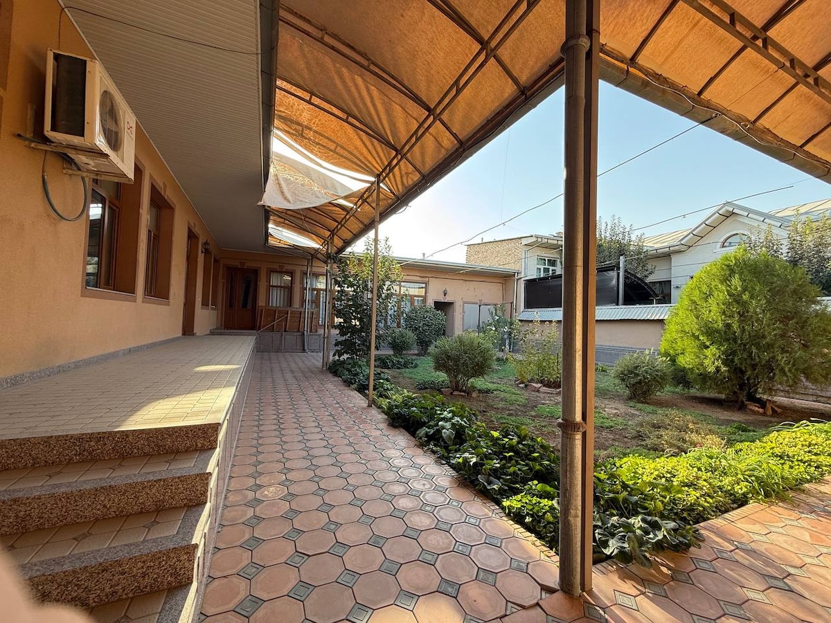 Njóttu glæsileikans sem fylgir því að gista á þessu nútímalega heimili. Fallega innréttuð með 4 svefnherbergjum og 3 baðherbergjum. Eitt baðherbergi er í húsinu og tvö á garðsvæðinu á bakhliðinni. Húsið er upphitað miðsvæðis fyrir kaldar nætur og kælt fyrir sumarið. Korzinka superstore er í göngufæri. Tyrkneskir og úsbekskir veitingastaðir eru einnig í nokkurra mínútna fjarlægð! Aðeins fjölskyldur eru leyfðar Athugaðu: Útritunartími er kl.12: 00! Innritun er kl. 14:00 Skráning lögreglu er ekki innifalin!