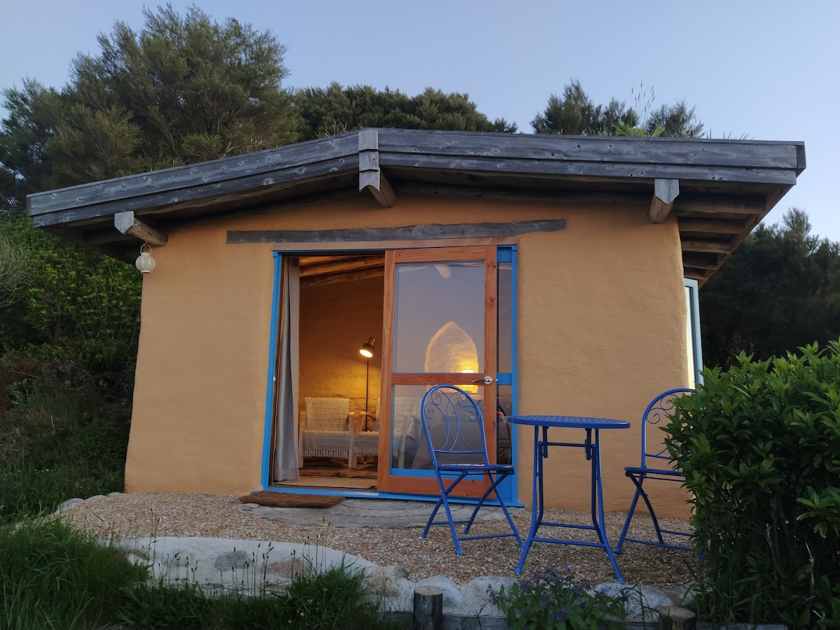 Directly bordering The ABEL TASMAN NATIONAL PARK offering EPIC VIEWS of ENDLESS SKIES, EVER CHANGING SEASCAPES , GREEN FORESTED MOUNTAIN, all within a RARE TOTAL PRIVACY. Soak up the unforgettable views of Abel tasman, Golden Bay, Farewell Spit and beyond from a cosy earth building remotely nestled on the heights of Wainui Bay. COSY and ROMANTIC, it is the perfect ESCAPE to UNWIND for NATURE SEEKERS and STAR GAZERS wanting a different experience.