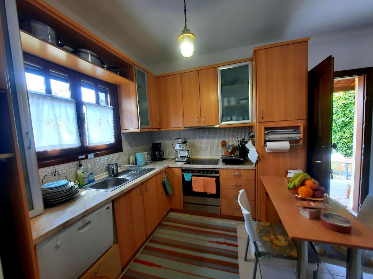 Húsið okkar „Apanema“ er staðsett í Lagonisi á Chalkidiki og býður gestum upp á ógleymanlegt frí í afskekktri, falinni paradís! Njóttu kyrrðar og kyrrðar náttúrunnar á stað þar sem grænir furutrjáir mæta grænbláum sjónum. Forðastu mannmergðina og syntu í kristaltæru vatni við óspilltar, gylltar sandstrendurnar sem eru í göngufæri frá húsinu. Skoðaðu nágrennið eða slakaðu einfaldlega á í garðinum okkar.