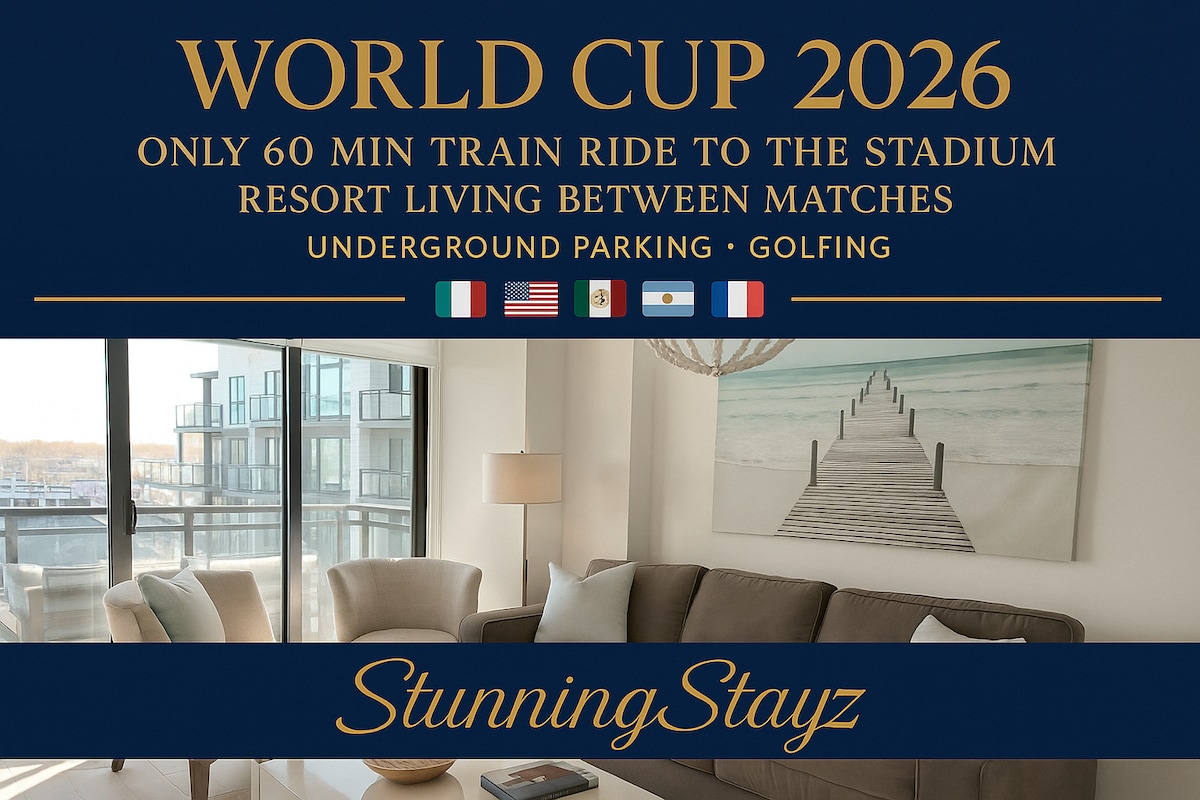 Fullkomið frí í klukkutíma fjarlægð frá Toronto! Nútímaleg og björt fullbúin íbúð með heitum potti allt árið um kring, útisundlaug, arni og eldstæði utandyra. Fyrir utan ertu umkringdur 200 hektara náttúruverndarsvæði, með göngu- og hjólastígum, golfi, kajak, kanó, bát o.s.frv. → Aðgengi að strönd → Neðanjarðarbílastæði fyrir 1 ökutæki → Fullbúið + fullbúið eldhús Heitur pottur allt→ árið um kring → Útisundlaug