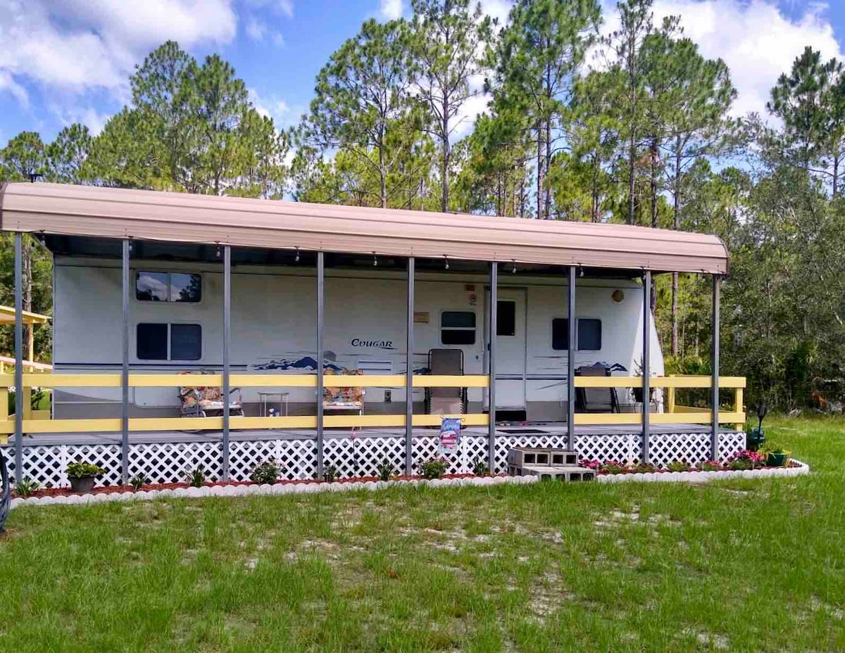 Verið velkomin í húsbílagarðinn okkar sem er í eigu og rekstri uppgjafahermanna þar sem ævintýrin mæta afslöppun! Tjaldsvæðið okkar er 4 km frá golfströndinni og býður upp á þrjú rúmgóð svæði fyrir húsbíla og einn 42 feta lúxusvagn sem hægt er að leigja og er fullkomin undirstaða fyrir ógleymanlega útilífsupplifun. Frábær staður til að gista á meðan þú kemur til að veiða, veiða, veiða eða bara njóta Big Bend svæðisins! ** Tjaldstæði okkar eru aðeins fyrir húsbíla. Engin tjöld eru leyfð að svo stöddu.