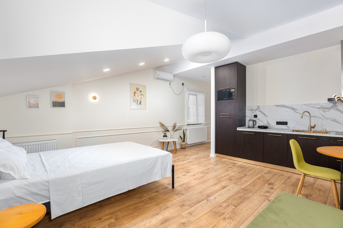 The apartment is located in one of the central, historic districts. You will stay in a typical Georgian old building. The property is studio-style and has a cozy balcony. The house is old but fully renovated and designed by me. The apartment is bright and comfortable, with a full bathroom (4 sq. m) and a kitchen. The apartment offers self check-in. You will receive detailed instructions the day before your arrival, making check-in smooth and easy. I hope you will enjoy your stay. .