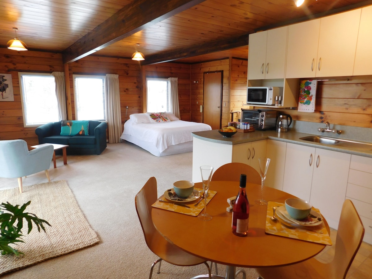 Velkomin í stúdíóið mitt, sveitalegt og bjart hvíldarstaður með frönskum hurðum sem opnast út í einkahúsagarð, í hjarta borgarinnar. Staðurinn er í friðsælli götu en þó í göngufæri við bestu veitingastaðina, kaffihúsin og vínbarina í Nelson. Þetta er tilvalið fyrir pör, skapandi fólk eða alla sem vilja slaka á í hjarta Nelson. Stúdíóið er rúmgott og með miklum karakter. Það er með hvelfingu í stofunni, aðskildu svefnherbergi og einföldu eldhúskróki fyrir afslappaða dvöl.