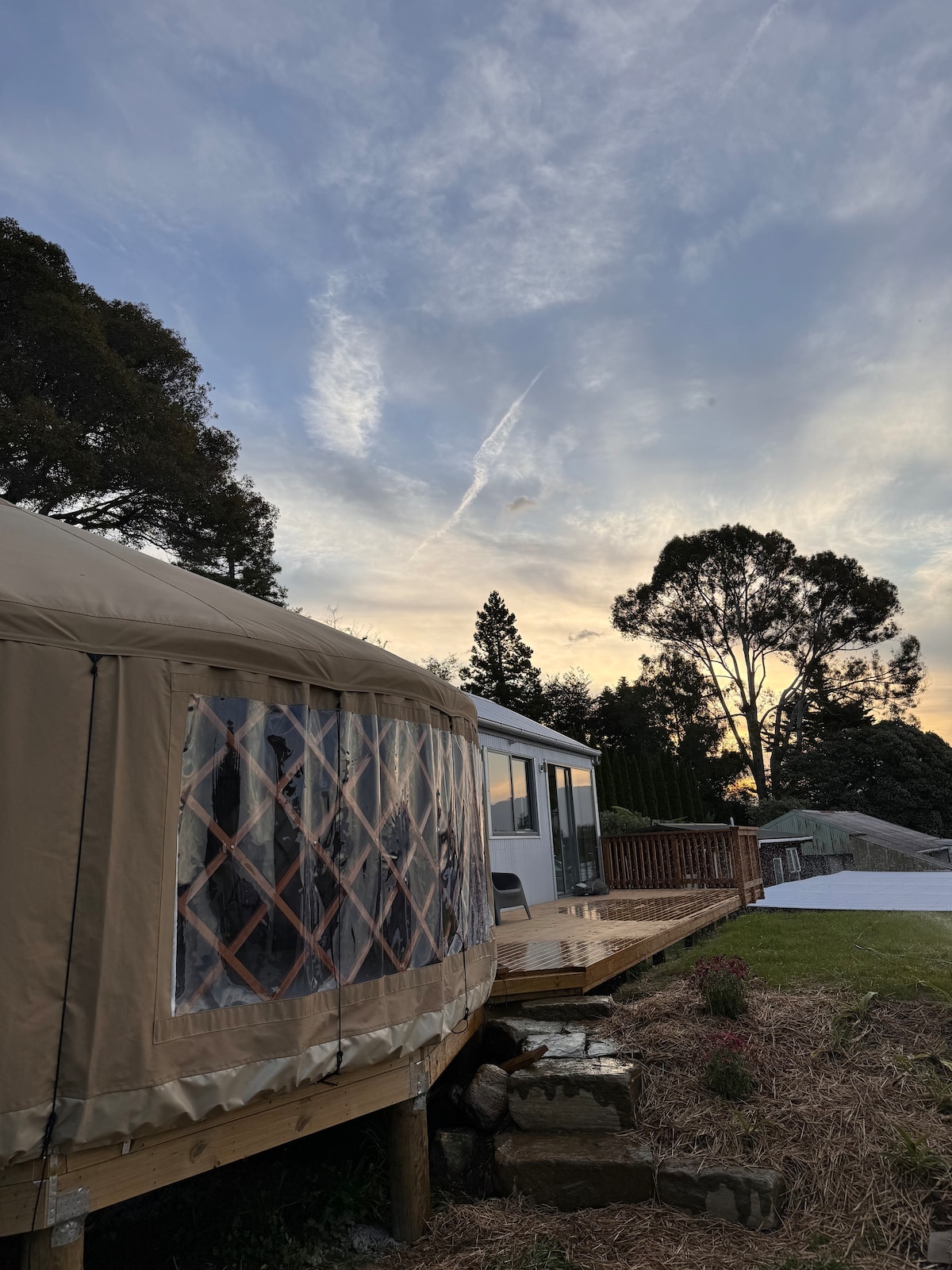 Awaawa Yurts er friðsælt afdrep í hæðunum fyrir ofan Palm Beach, Waiheke Island. Handgerðu júrt-tjöldin okkar eru meðal innfæddra runna með útsýni yfir sjóinn og bjóða upp á kyrrlátt rými til að slaka á og njóta taktsins á eyjunni. Hvert júrt er fullkomlega einangrað og úthugsað og blandar saman einfaldleika þess að búa utan alfaraleiðar með nokkrum vönduðum þægindum. Á hlýjum dögum skaltu rúlla upp strigaveggjunum til að hleypa inn golunni og fuglasöngnum.