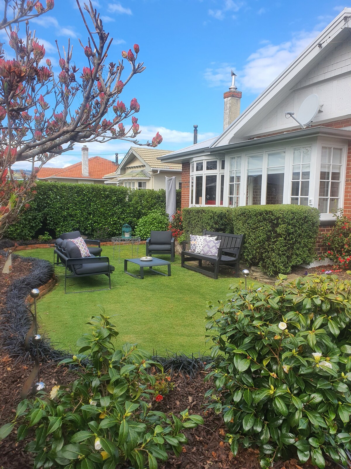 Hlýtt og þægilegt, bakkinn er vel einangraður, vel upphitaður og með nútímalegu eldhúsi. Miklar endurbætur í júlí 2024 bættu við öðru baðherbergi og endurbættu núverandi baðherbergi. Þú ert aðeins í 2 mínútna göngufjarlægð frá einni af fallegustu ströndum Nýja-Sjálands og í 15 mínútna akstursfjarlægð frá miðbæ Dunedin. Þrjú svefnherbergi með 2 queen-size rúmum og 2 stökum. Tvö fullbúin baðherbergi, bæði með sturtu Við erum gæludýravæn og eignin er vel girt svo að hundinum þínum sé óhætt að ráfa um grasflötina.