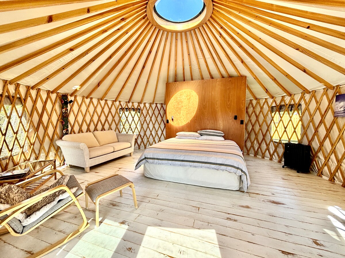 Velkomin/n í Hole in the Rock Yurt — einstakan afdrepstað með stórkostlegu útsýni sem þú átt eftir að elska. Jurtatjaldið er mjög hlýtt og notalegt, fullkomið til að slaka á í þægindum. Hún rúmar allt að fjóra gesti með king-size rúmi og svefnsófa. Ef þú ert að ferðast með stærri hóp eða fjölskyldu bjóðum við einnig upp á stúdíóíbúð á lóðinni sem rúmar fjóra gesti í viðbót með king-size rúmi og svefnsófa. Hér er hlekkurinn fyrir stúdíóið airbnb.com/h/holeintherockstudio