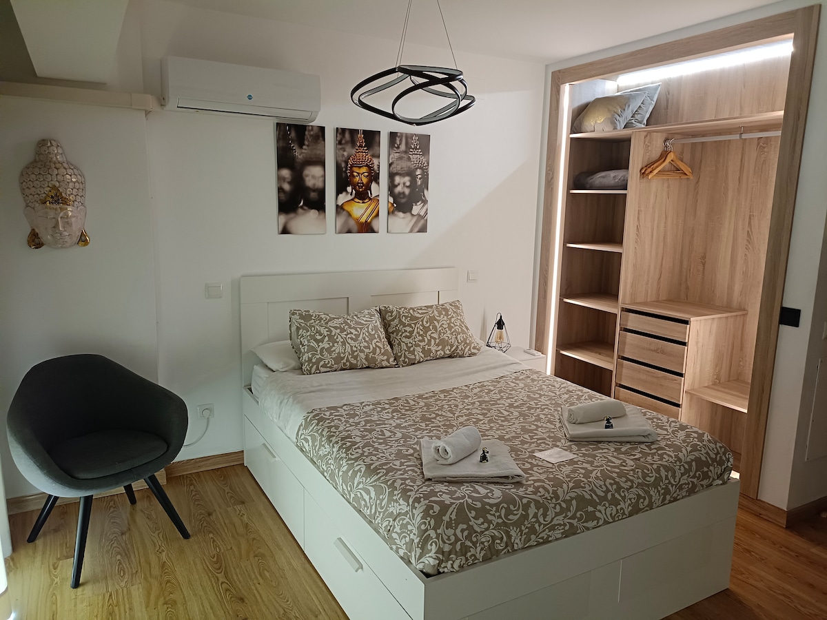 Stígðu inn í þægindin í þessu lúxusstúdíói í hjarta Malaga. Betri staðsetningin lofar fáguðu og afslappandi afdrepi sem er steinsnar frá aðalmarkaðnum, sögufrægum kennileitum, heillandi kaffihúsum, vinsælum veitingastöðum, spennandi verslunum, blómlegri höfn, sólríkum ströndum og mörgu fleira! Nútímaleg lúxushönnun og ríkulegur þægindalisti munu gleðja þig. ✔ King-Size Beds ✔ Open Design Living ✔ Fullbúið eldhús ✔ Snjallsjónvarp ✔ Háhraða þráðlaust net Frekari upplýsingar eru hér að neðan!