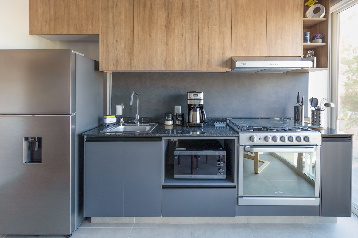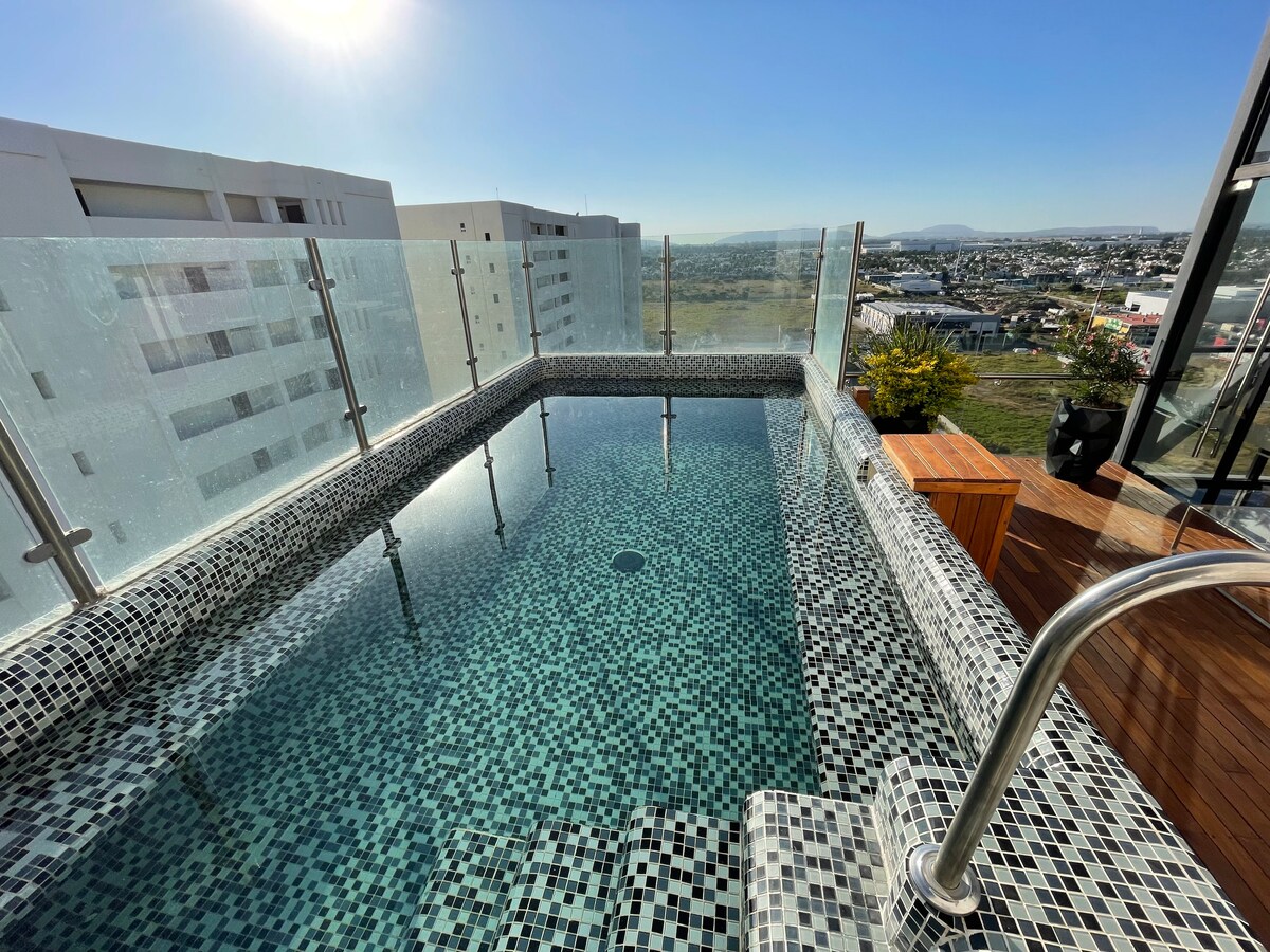 -22nd floor swimming pool -Beautiful gym with city views -Fully equipped for long stays -Parking available (at additional cost) - Housekeeping service: Once a week for reservation of +7 nights This deluxe studio with a balcony has everything you'll need for your stay. Located in a brand-new luxury tower in the Providencia neighborhood, near the Midtown Jalisco shopping mall.