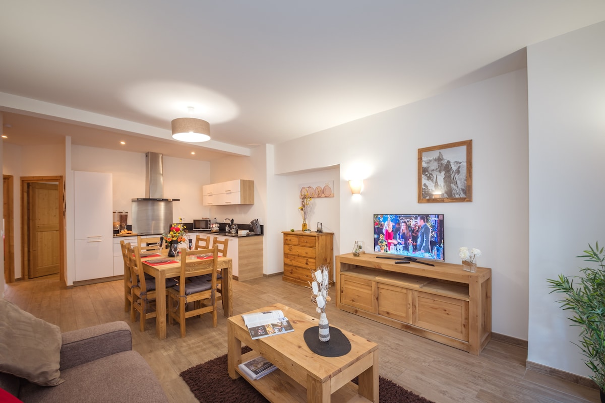 A spacious, modern one bedroom apartment well located right in the heart of downtown Chamonix. The apartment has a small balcony offering an amazing view on the Mont Blanc, and a ski locker in the cellar. The location is absolutely perfect, situated in a pedestrian area just in front of the Aiguille du midi lift, few meters from the main street and 5 mins walk from Chamonix town centre. The train, Mont-Blanc express, stops at the station Aiguille du Midi 200 meters from the door.