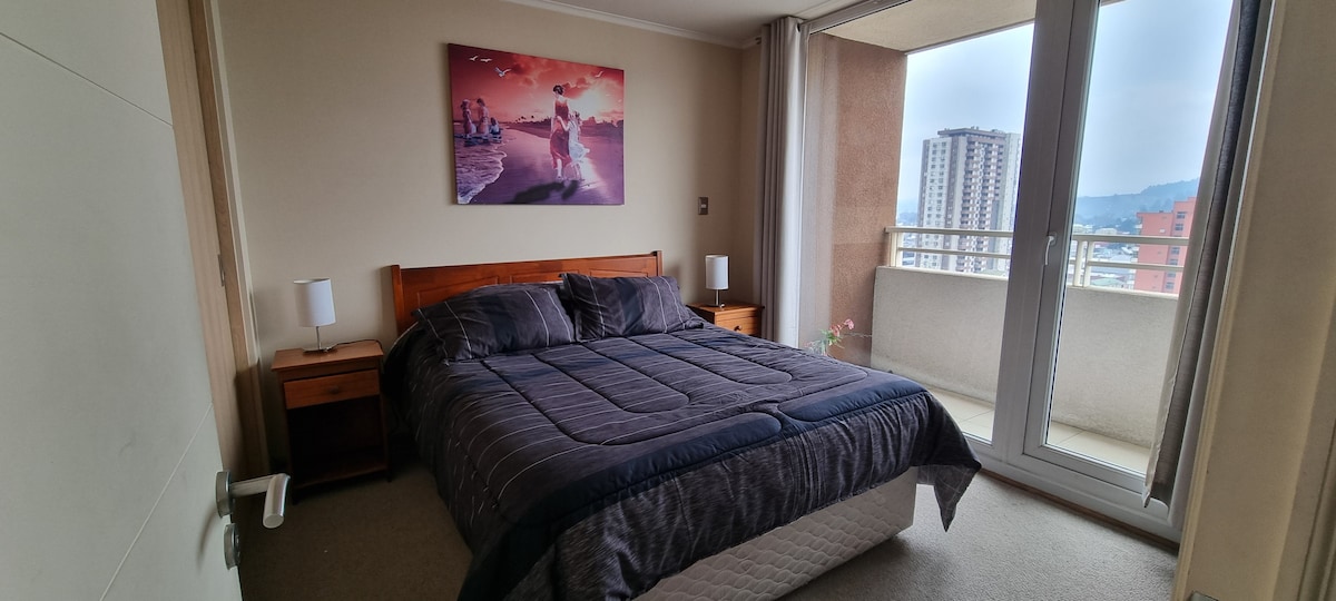 Departamento Central, tveimur húsaröðum frá Plaza de armas og helstu verslunum, er með þráðlaust net. tvö svefnherbergi, það fyrra með sérbaðherbergi og annað til almennrar notkunar á íbúðinni. Stórt eldhús og stofa, verönd með vesturátt. Að lokum er einkabílastæði inni í byggingunni og nokkrum metrum frá lyftunni.