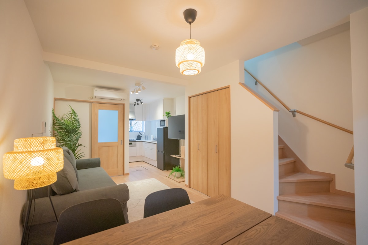 Located in Osaka’s Joto Ward, this 1909 historic house is a rare WWII survivor. Renovated in 2015 by a renowned designer, it spans 150㎡, blending historical charm with modern luxury in a tranquil city-center retreat. Its elegant design harmonizes past and present, offering cultural immersion and spacious comfort.With two bathrooms, separated toilets, washbasins, and a large bath, it ensures privacy and cleanliness for groups. Experience culture, history, & comfort your perfect Osaka stay awaits.