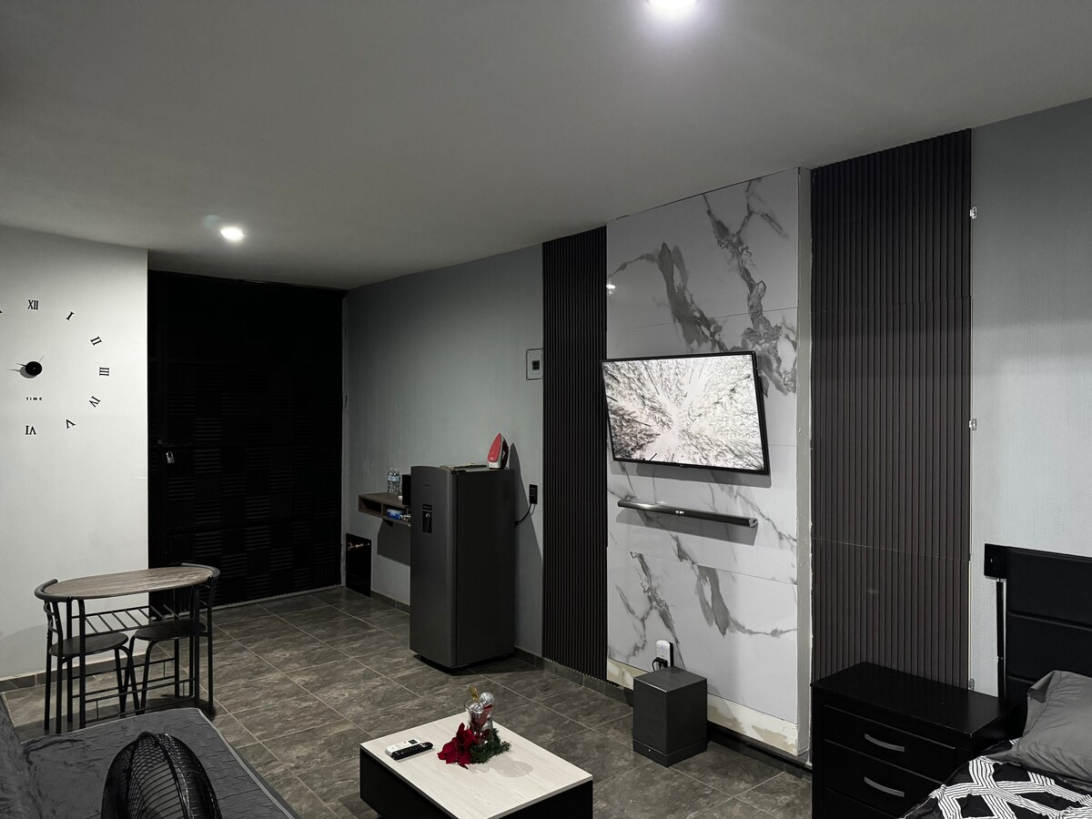 Nútímaleg íbúð 3,5 húsaraðir frá öllu sem mikilvægt er að sjá í Tequila (í miðbænum, mikilvægustu brugghúsin, barir, veitingastaðir o.s.frv.), óviðjafnanlegur bær með bílastæði á sama þaki, hlöðnum og myndbandseftirliti. Rúmtak fyrir 4 manns sem dreift er í 2 svefnherbergjum með queen size rúmi, skáp og eigin baðherbergi fyrir hvert herbergi,
