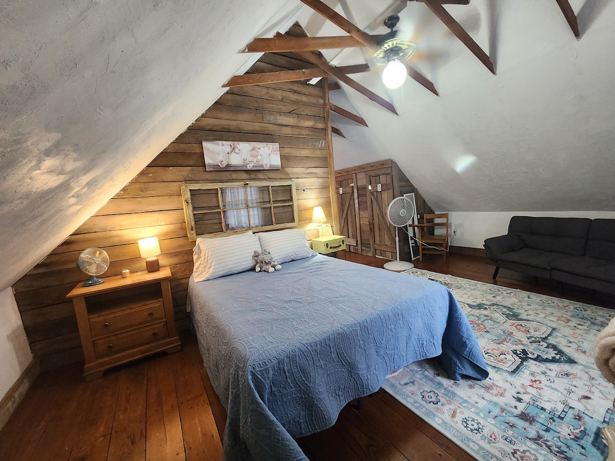 If you enjoy unique spaces & love animals, this is the apartment for you. Stay in the most unique "barn" you'll find. This loft apartment includes a full bath & is shared with 20+ goats & other farm animals. You're sure to have a memorable stay. There is a small pond on the property & ample free parking. If you time your stay right you could join in goat yoga or another farm event! This barn is located just off I-70 & a short drive to several areas colleges, the casino, & entertainment!