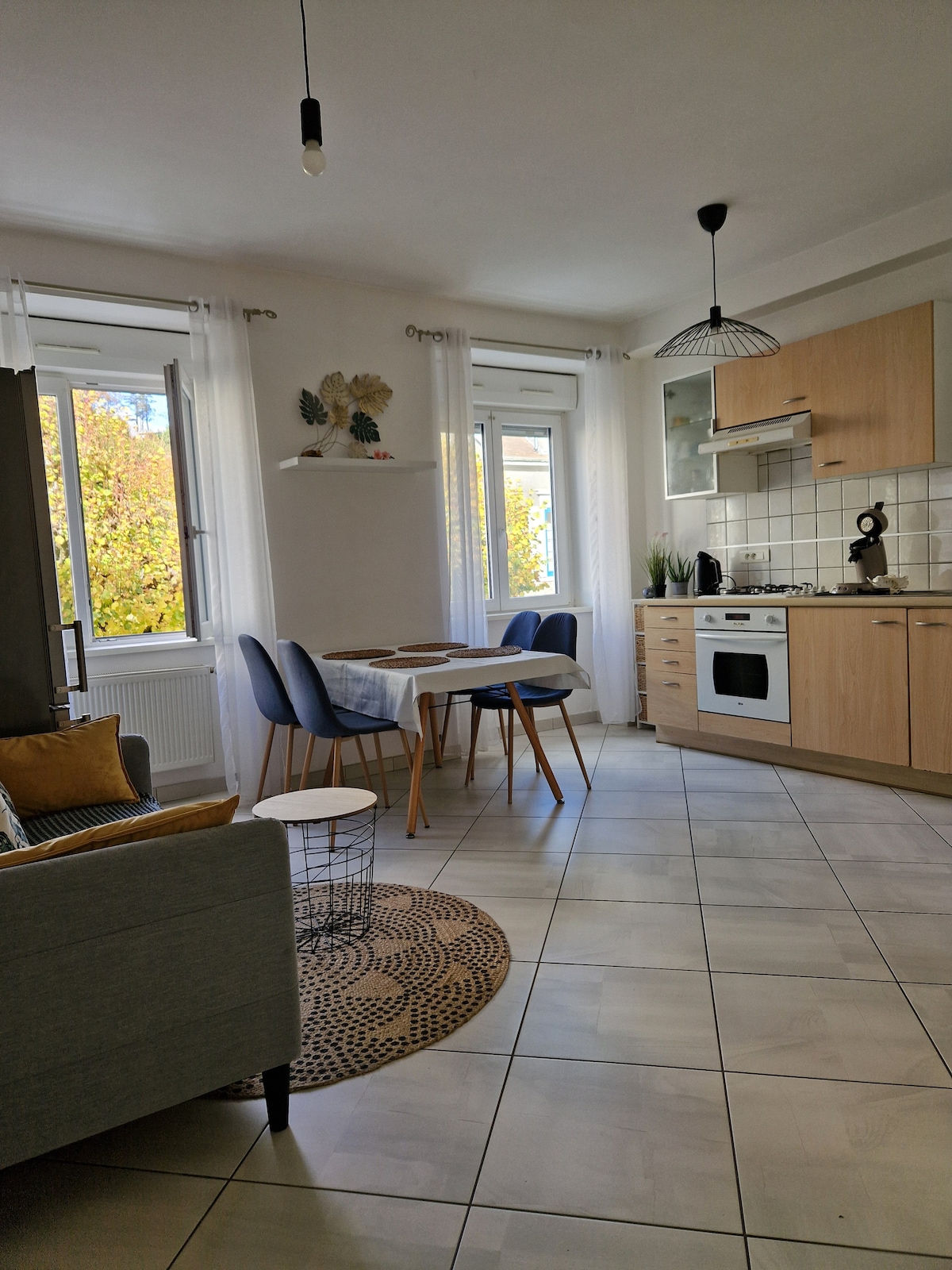 Bienvenue dans ce bel appartement entièrement rénové, mêlant confort moderne, matériaux naturels. Idéal pour 2 à 3 personnes, que vous soyez en déplacement professionnel, en couple ou en famille. 🛋️ Salon chaleureux Grand canapé convertible pour une 3ᵉ personne Smart TV murale Poêle à pellets Lave-linge séchant Lit queen-size Grande douche 140×140 cm Banc intégré Parking directement devant le logement À 5 min du Lion de Belfort et du Parc de la Miotte