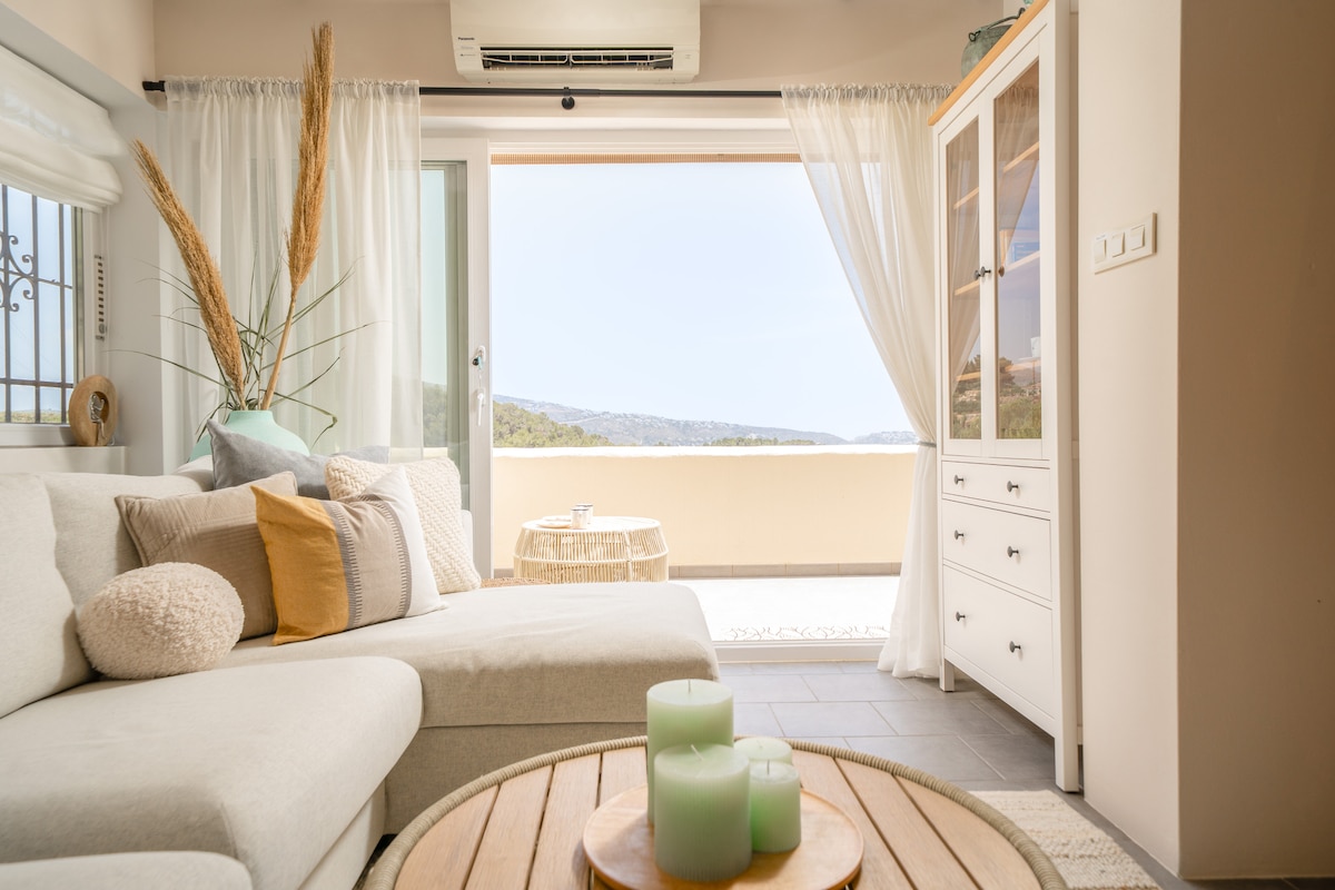 Giró er notaleg og björt íbúð sem er innréttuð í Miðjarðarhafsstíl. Njóttu einkaverandar sem er fullkomin fyrir morgunverð eða afslöppun utandyra. Búin ofur-sjálfvirkri kaffivél svo að þú getir byrjað hvern dag á góðu kaffi. Kyrrlátt svæði, nálægt ströndum, leiðum og heillandi þorpum. Tilvalið fyrir pör eða ferðamenn sem vilja aftengjast og upplifa ósvikna og afslappandi upplifun.