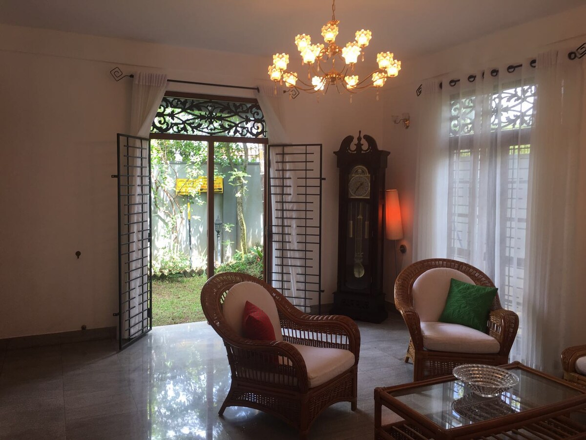 Rúmar allt að 4 manns: ætlað fjölskyldum, pörum og dömum. Tvö svefnherbergi með loftkælingu, en-suite baðherbergi (með heitu vatni), þægileg stofa, borðstofa, eldhús, þráðlaust net, sérinngangur og bílastæði fyrir einn bíl. Góður aðgangur að almenningssamgöngum, flugvellinum (~1 klst.) og miðborg Colombo (~20 mín.). 5 mín. göngufjarlægð frá matvöruverslunum og verslunum og 5 mín. akstur á veitingastaði.