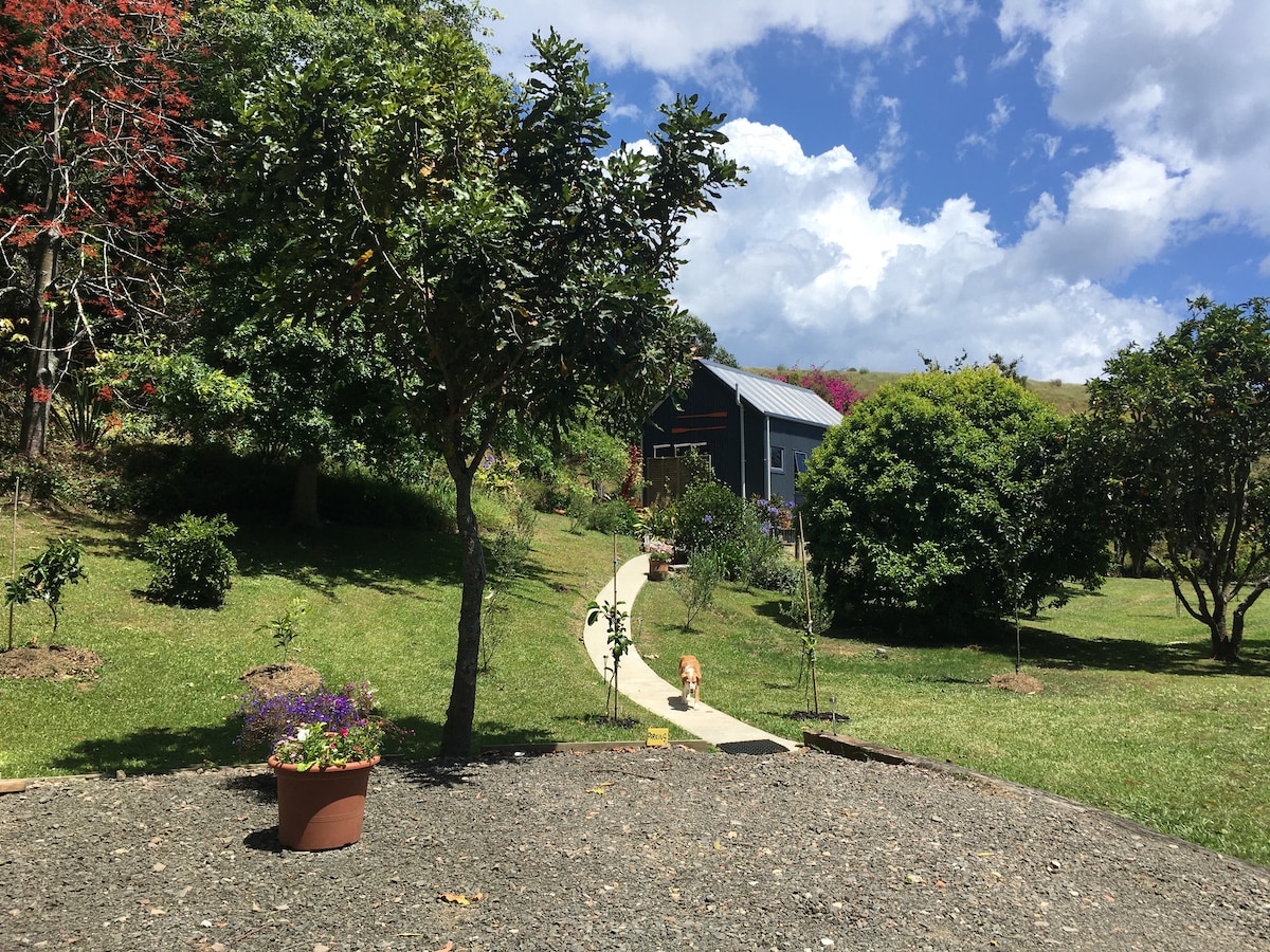 Take it easy at this unique and tranquil getaway. Set in our orchard area of our 5 acre property which borders the Coromandel State Park. Landscaped grounds with beautiful native bush backdrop. Our tiny house has only what you need and no more but is full of charm and in a wonderful setting. There is a beautiful bush walk from the property up to the Wentworth Waterfall, gold mines in the back yard, landscaped grounds, native bush backdrop with native birds. A 10 minute drive to shops + beach