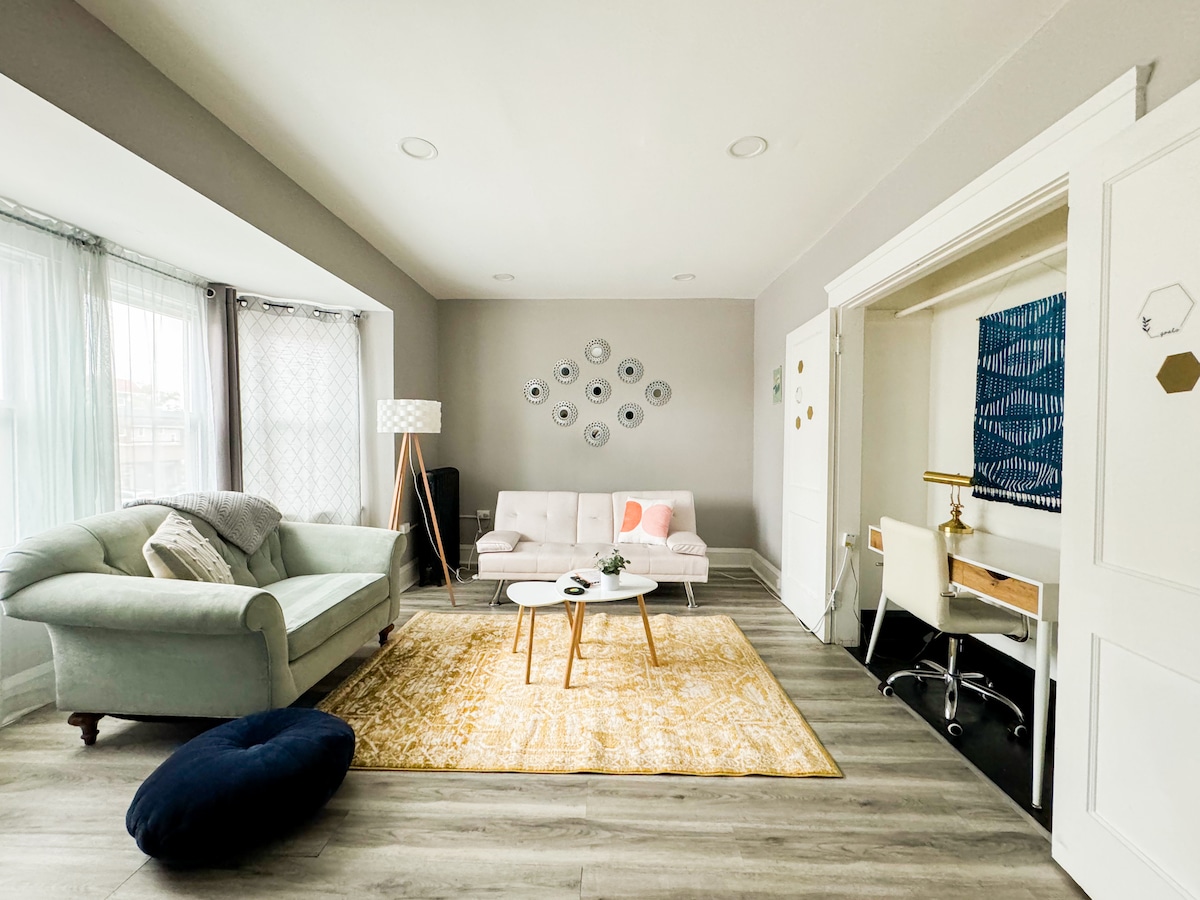Walk to some of Cleveland’s favorite restaurants in this centrally-located studio. Located on a quiet block in Tremont, you can relax in peace and comfort after exploring the city, hiking in the Metroparks, or spending time at Lake Erie (10-15 minute drive). The studio is located close to downtown, within a 15 minute drive of Cleveland Clinic/University Hospital and less than 10 minutes from Metro Hospital. This studio is located on the lower level of our home with a private entrance.
