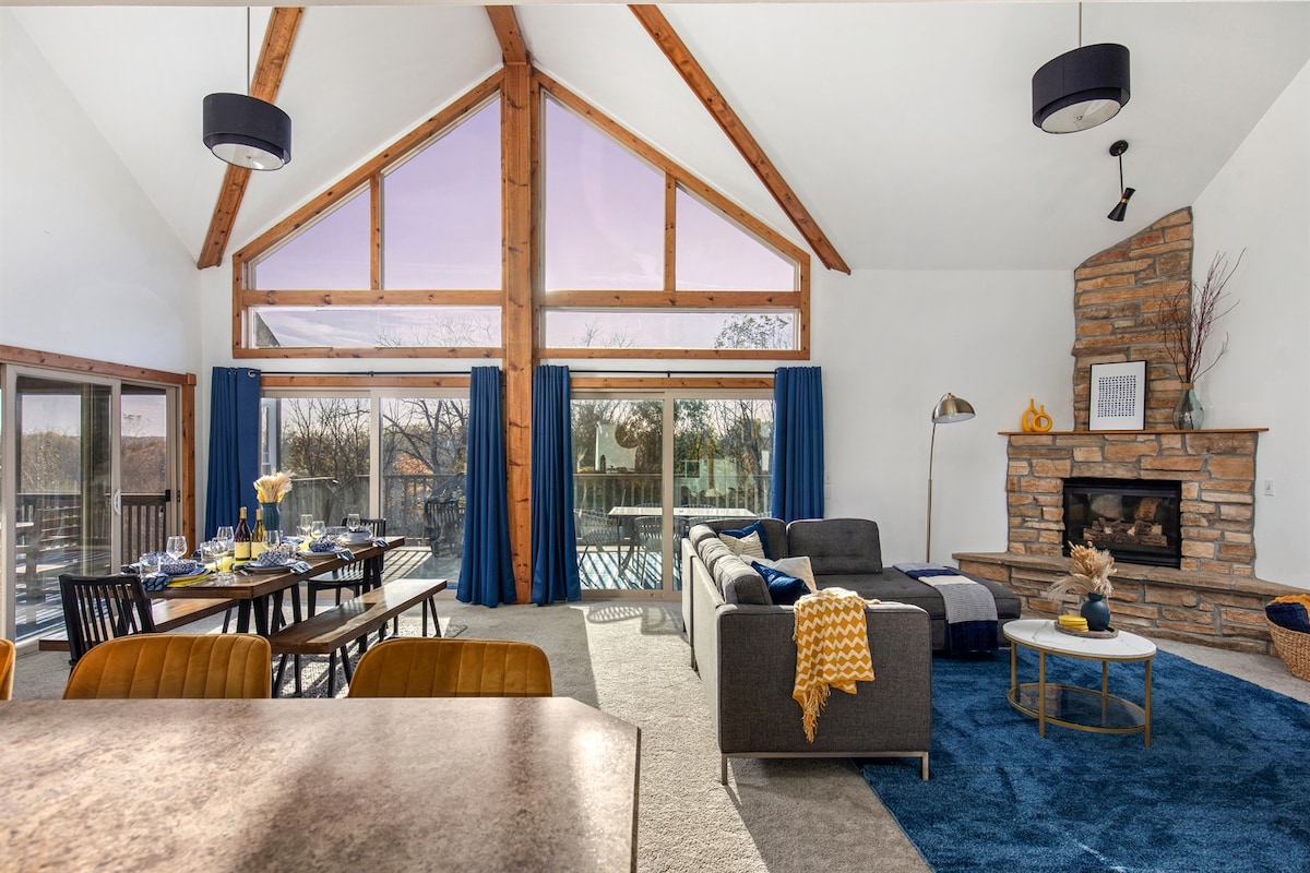 Þessi sérsniðni skáli er fullkomið frí fyrir vini og fjölskyldu sem leita að einveru Galena-svæðisins og fínum veitingastöðum og verslunum í aðeins 10 mínútna fjarlægð við aðalgötu Galena. Hver af þremur hæðum býður upp á svítu eiganda með baði. Notalegt allt að 2 eldstæði, grilla á þilfari eða búa til „smores“ við eldstæðið. Skálinn er með háhraða, trefjanet og gönguleiðin á neðri hæðinni er með 55" flatskjásjónvarp. Gestir hafa aðgang að sundlaugum og poolborðum í eigendaklúbbnum í 7 mínútna fjarlægð.