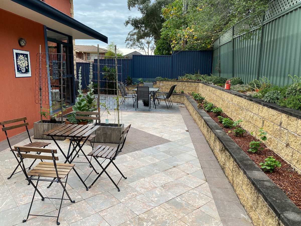 Farðu aftur til fyrri tíma í Cobblestone Cottage mínum - Bústaðurinn er aðskilið hús frá húsinu mínu svo að þú hefur algjört næði, ekkert sameiginlegt baðherbergi eða hús. - Notalegur arinn fyrir veturinn - Mjög stórt baðherbergi með klófótarbaði Fullbúið eldhús - Rúmföt veitt - Vefðu um verandah fyrir sumarið með auka útibaði til að slaka á undir stjörnubjörtum himni - Skák utandyra - Kjúklingar fyrir fersk egg - Lest og verslanir eru í 7 mínútna fjarlægð. Brúður eða brúðgumi að undirbúa brúðkaupið þitt til að sjá upplýsingar um kostnað