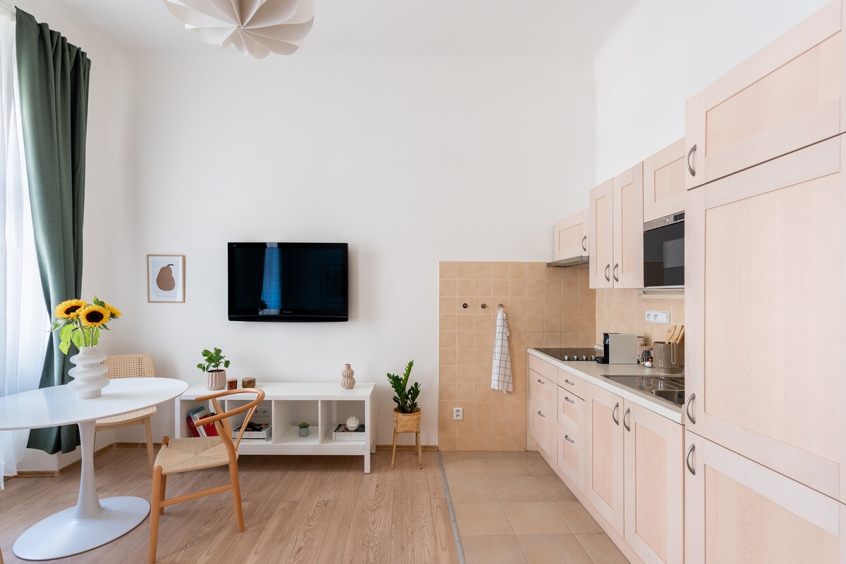 We offer cozy apartment near the center in a historic building that has been completely reconstructed. "Find your second home." We wished to create a home that would provide maximum comfort for relaxing after exploring the city. It is just a few minutes from the center of Prague, not far from the tram stop, the main train station, and the metro. A modern, fully equipped kitchen and a Smart TV with a fast Wi-Fi connection are available.
