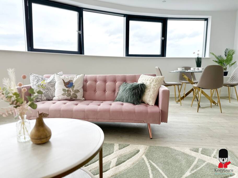 Deluxe tveggja herbergja íbúð með mögnuðu útsýni yfir vatnið🌊. Rúmar allt að 5 manns með 2 hjónarúmum og samanbrjótanlegu rúmi gegn beiðni. Njóttu rúmgóðrar stofu undir berum himni, fullbúins eldhúss, tveggja nútímalegra baðherbergja og einkasvala. Tilvalið fyrir fjölskyldur, vini eða viðskiptagistingu. Hratt þráðlaust net, nýþvegin rúmföt, handklæði og allar nauðsynjar fyrir þægilega og afslappandi dvöl á góðum stað. Greitt bílastæði á viðráðanlegu verði 🅿️ fyrir aðeins £ 6 fyrir 24 klukkustundir / £ 10 fyrir 48 klukkustundir.