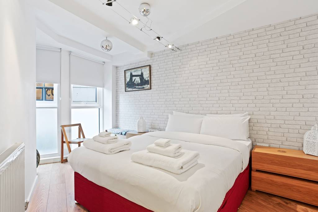 Gistu í hjarta líflegasta hverfis við ána í London. Þessi stílhreina og rúmgóða íbúð með einu svefnherbergi (550 fet) er staðsett innan öruggs, nútímalegs byggingarverkefnis og býður upp á fullkomið jafnvægi milli þæginda og staðsetningar, aðeins tveimur mínútum frá táknrænu Tower Bridge. Innandyra er svefnherbergi með tvíbreiðu rúmi, nútímalegt opið stofurými, lúxusbaðherbergi og allt sem þarf til að njóta afslappandi dvala. Hvort sem þú ert hér í skoðunarferð, viðskiptaerindum eða rómantískri fríferð er þetta kjörið aðsetur