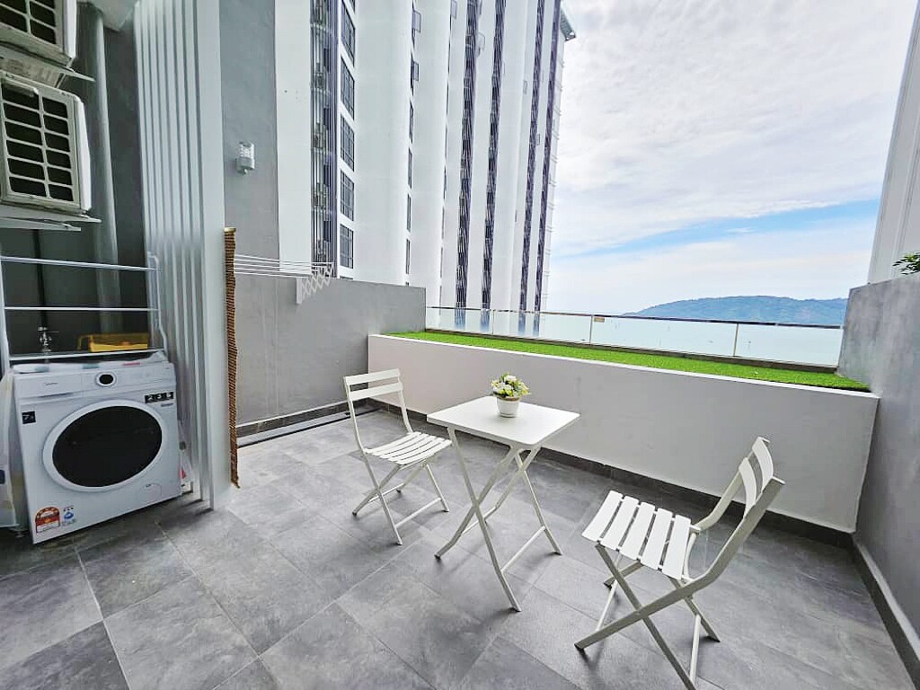 Gestahúsið okkar er staðsett í miðri borginni. Það tekur aðeins 15-20 mínútur að ferðast frá flugvellinum að STRÖNDINNI KOTA KINABALU. Öll kennileiti eins og filippseyski markaðurinn, Bar Street, verslunarmiðstöðvar, Ferry Terminal, Gaya Street og þekktir veitingastaðir; allt í innan við 5-15 mínútna göngufjarlægð. Íbúðin er með notalegt svefnherbergi með óviðjafnanlegu sjávarútsýni og einkasvölum. Við bjóðum einnig upp á 1,5 metra hágæða rúm til að tryggja góðan nætursvefn
