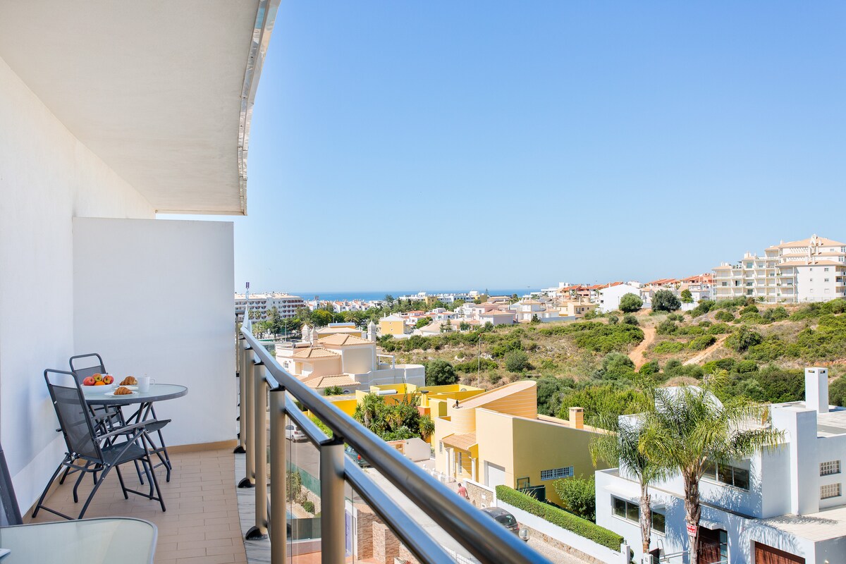 Við bjóðum upp á yfirgripsmikið útsýni yfir sjóinn og Albufeira og erum staðsett á lítilli hæð í 15 mínútna göngufjarlægð frá gullnu sandströndinni Praia dos Pescadores eða Oura. Allar svalir með sjávarútsýni, sólarupprás og útsýni yfir sólsetrið. Íbúðin er björt og sólrík, mjög rúmgóð og glaðleg. Nýlega uppgert (maí 2018) og nú ný endurnýjun árið 2024 þar sem ég er að hugsa um að bjóða upp á nútímalegt og þægilegt rými fyrir yndisleg frí gesta okkar.