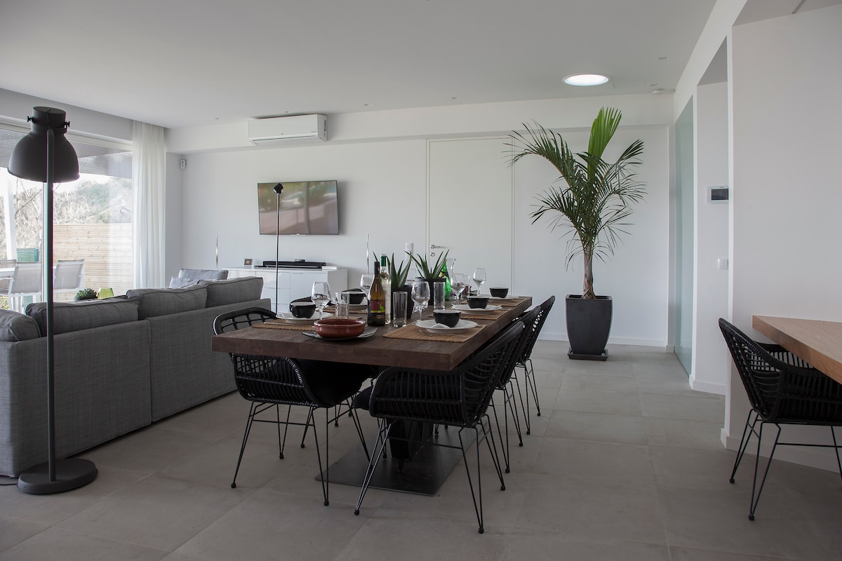 Þessi 195m2 strandvilla á glæsilega klettinum er tilvalinn staður fyrir örugga dvöl til skamms eða lengri tíma og fullkomna heimaskrifstofu. Frábær staðsetning við ströndina með stórri þakverönd og svölum. Algjörlega hrein og sótthreinsuð. Internet. Stofa. Eldhús. 4 Svefnherbergi. Ísskápur. Handklæði. Hárþurrka. Mjög þægilegt rúm. Tilvalið fyrir 8 manns - hámark 10. Bjart. Upphitun. Rúmgott. Mjög öruggt svæði. Barnarúm í boði. Engin AC. Þvottavél. Þurrkari.