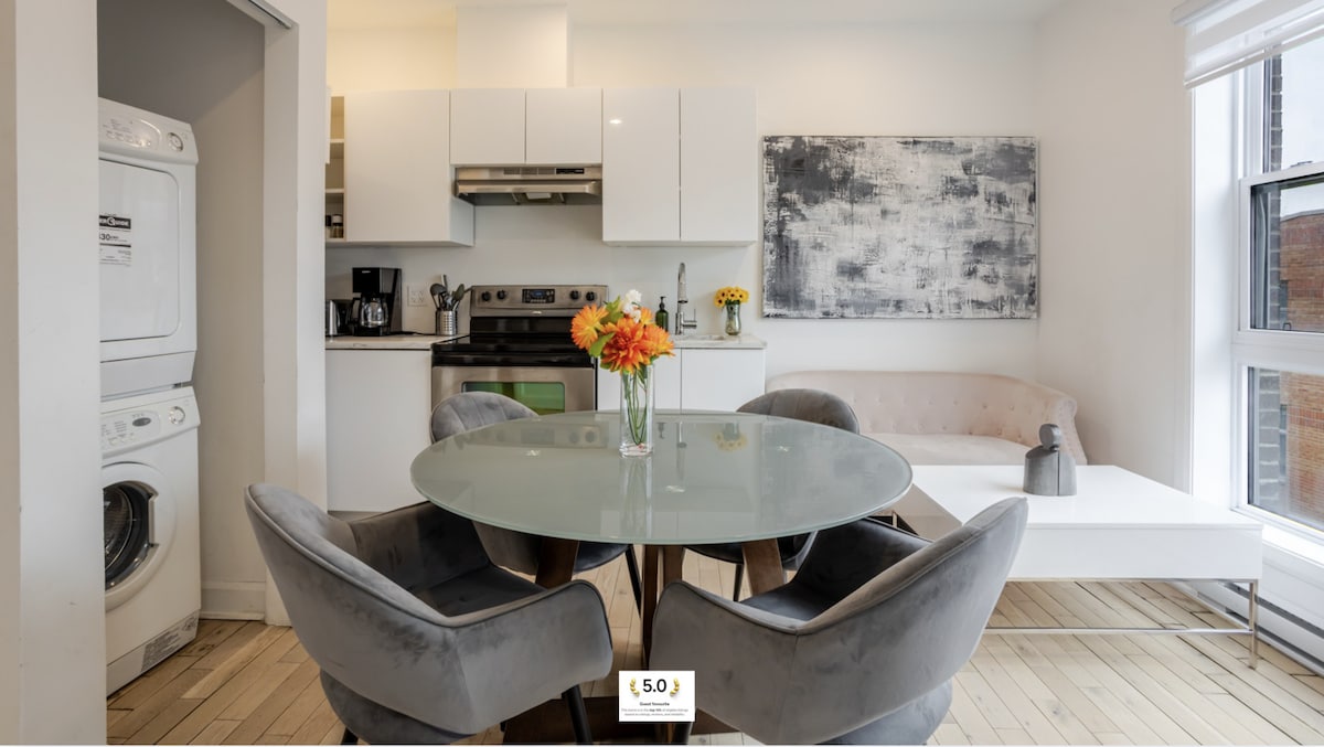 Njóttu góðs af því að hafa allt innan seilingar frá þessu fullkomlega staðsetta heimili í hjarta Montréal. Göngufæri frá gömlu Montréal og gömlu höfninni, Place des Festivals, ráðstefnumiðstöðvum, Metro (neðanjarðarlest), aðalstöðinni og fleiru. Í Condé Nast Traveler 2024 er eignin með stolti nefnd sem eitt af bestu Airbnb-stöðunum í Montreal.