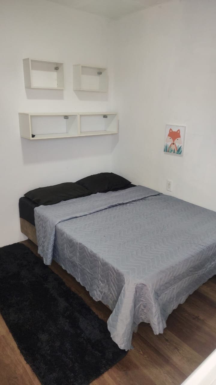 - Vaga coberta exclusiva no estacionamento grátis durante a estadia. - Quarto principal: cama de casal, ar condicionado split (controle remoto) e espelho. - Quarto secundário: escrivaninha, cadeira, armário embutido, ventilador e bicama. - Banheiro: chuveiro elétrico e espelhão. - Sala de estar / jantar: televisão smart (smart tv) e sofá retrátil. - Cozinha: armários, utensílios, geladeira e cooktop (gás encanado). - Ampla varanda (coberta): varal de chão, mesa com cadeiras, bancos e chuveirão.