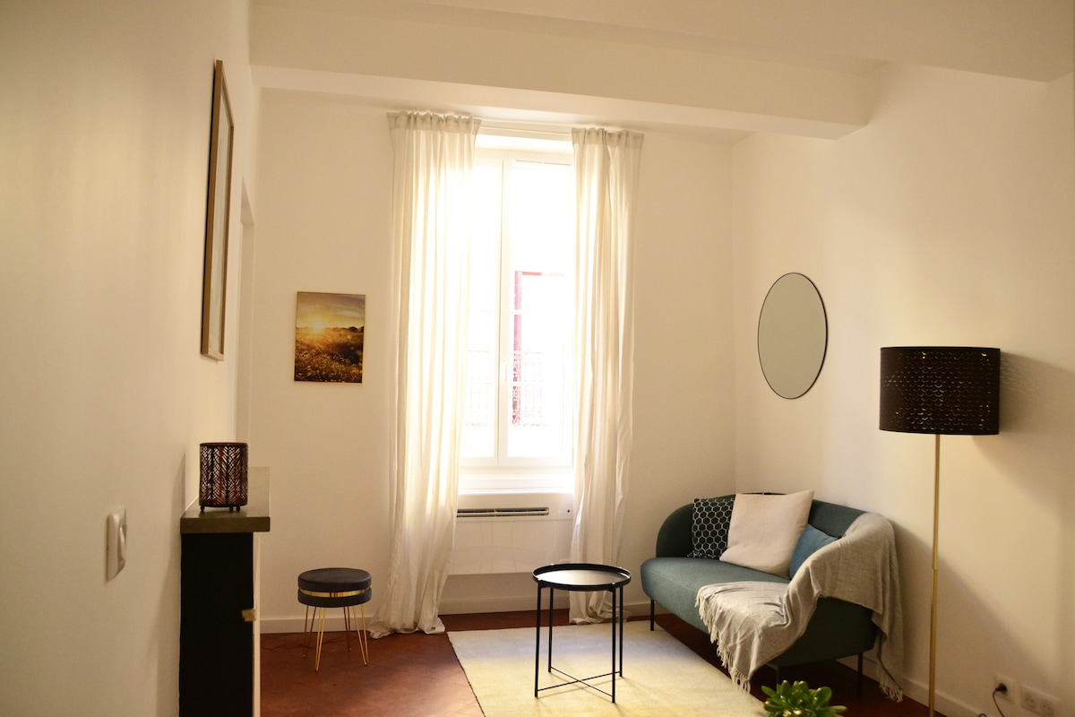 NEW ❤️ Coeur de Ville Falleg, fulluppgerð, Afturkræf loftræsting, Ný þægindi, Queen-rúm, Rúmföt, Handklæði, Rúmföt, Rúmföt, Rúmföt, Þvottavél, Kaffi, Te, Þráðlaust net Large and Beautiful Private Stone Courtyard, Not overlooked, Rare in the Historical Center of Avignon Velkomin Hjól! 🚲 Hér getur þú lagt hjólunum þínum í einkagarðinum Rúmtak: 2 manns Reyndur gestgjafi í samstarfi við Avignon Tourisme Sjáumst fljótlega, Camille✨️