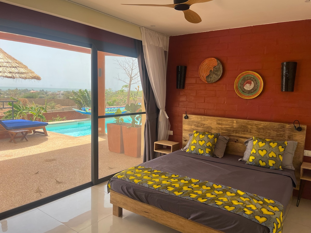 Lítið sett af gistiheimiliskössum með beinum aðgangi að ströndinni, sundlaug, heitu vatni, loftkældum herbergjum, ókeypis þráðlausu neti og draumastað til að eyða nokkrum dögum eða nokkrum vikum. Skjólgóð verönd milli sundlaugar og strandar fyrir máltíðir, setustofu, þar er að finna fullkomna dvöl. Samstarfsaðili okkar mun njóta þess að fá þig til að kynnast Senegal í skoðunarferðum þínum. Bílstjórinn getur sótt þig á flugvöllinn.