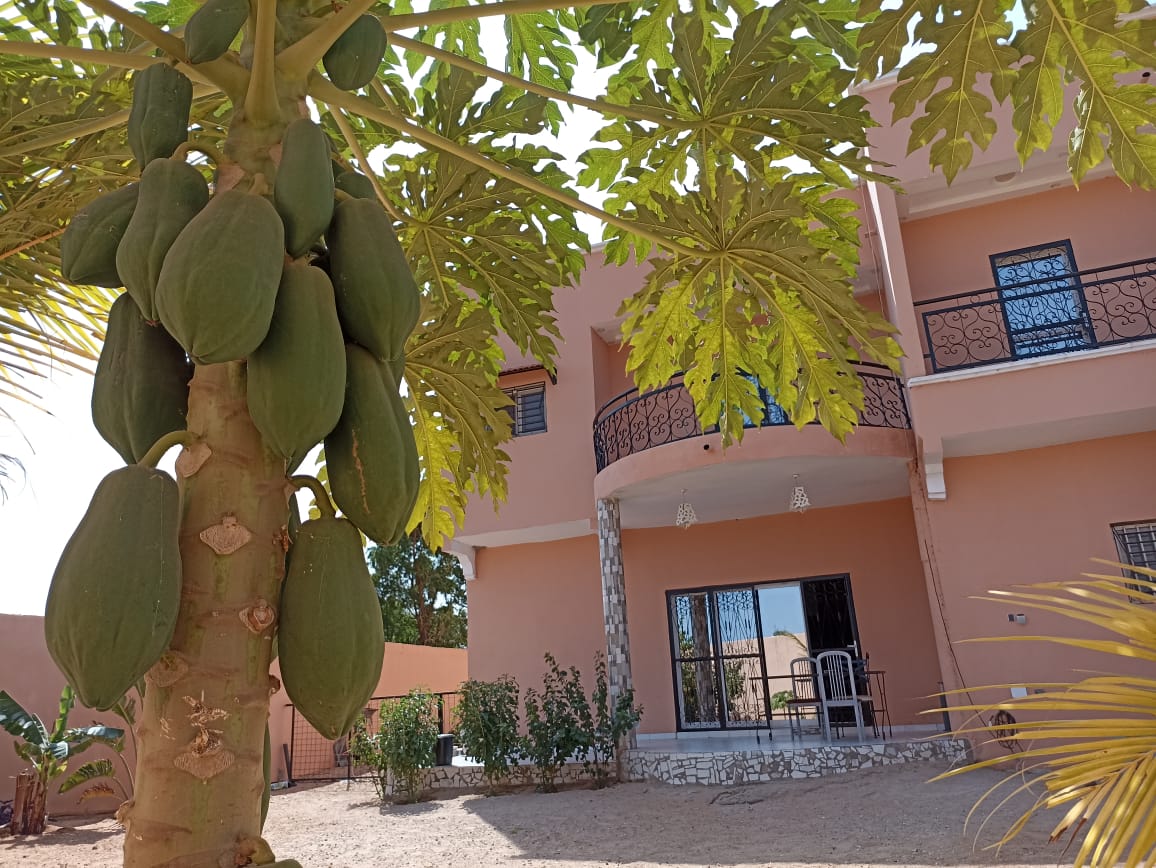 15 mínútna fjarlægð frá NÝJA BLAISE DIAGNE-FLUGVELLINUM (mögulegur flutningur) Framúrskarandi umhverfi, í hjarta Baobabs-skógarins, milli Accrobaobab (einstök trjáklifur) og Bandia-dýraverndarsvæðisins, finna þægindin, kyrrðina í fjölskyldubyggingu í 14 loftkældum herbergjum sem eru þekkt fyrir borðið, langt frá ys og þysinn í kring. Ekki missa af þessu LIFÐU ÞESSU Á ANNAN HÁTT...
