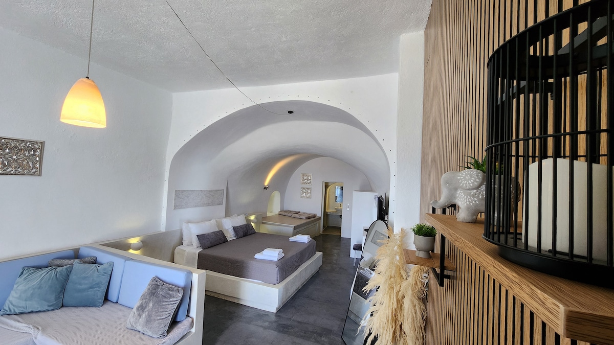 Með árangri Kaleidoscope Cave Houses, fylgdi Kaleidoscope Oia Suites fljótlega eftir. Mystic Suite með heitum potti og caldera útsýni, skorið inn í einstaka caldera klettana er fulluppgerð svíta sem er staðsett í miðju Oia og mjög nálægt frægu BLÁU hvelfingum Oia með stórkostlegu útsýni yfir caldera, eldfjallið og Eyjahafið. Hin skráningin er Blue Dome svítan með einkaþaki og nuddpotti.
