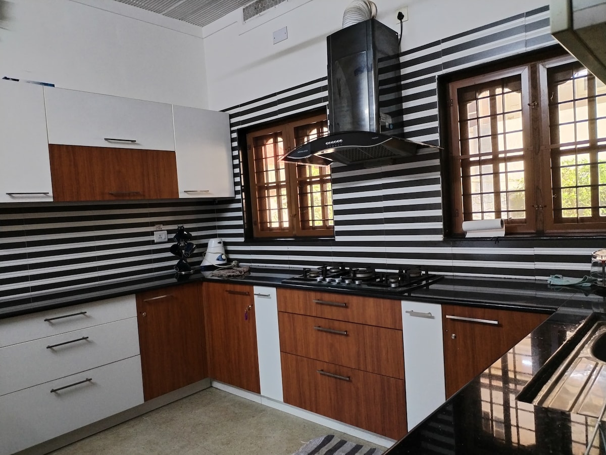 Kynnstu þessum griðastað í Kottayam-borg sem er friðsælt himnaríki að heiman. Hún er fullbúin nútímalegum lúxus og býður upp á glæsilegar innréttingar, tvö svefnherbergi með baðherbergi, loftkælingu í einu herbergi, vel búið eldhús og notalegar svalir. Þægileg staðsetning nálægt nauðsynjum Þrátt fyrir kyrrlátt andrúmsloftið er þetta afdrep þægilega staðsett í seilingarfjarlægð frá nauðsynjum, þar á meðal veitingastöðum, sjúkrahúsum og fleiru.