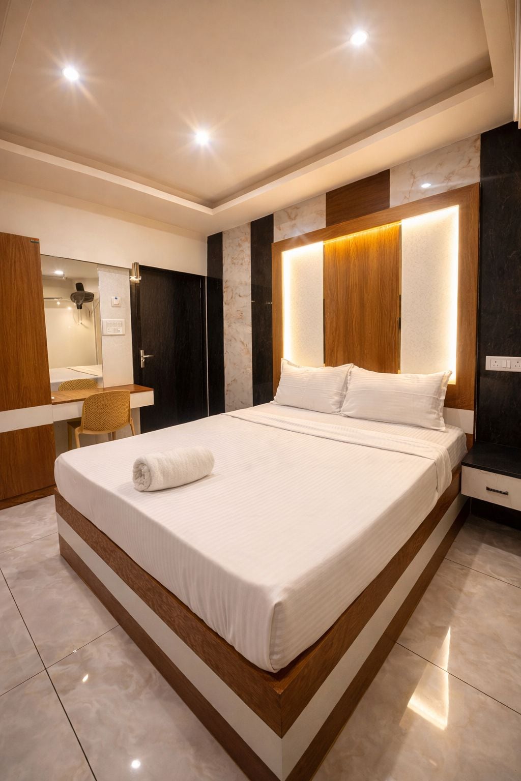 Notaleg dvöl í hjarta Chennai í Nungambakkam. Þetta 200 fermetra herbergi er með þægilegt hjónarúm, sérbaðherbergi, skrifborð og lítinn eldhúskrók. Staðsett nálægt Apollo sjúkrahúsinu, bandaríska sendiráðinu, Khadar Nawaz Khan Road og T. Nagar. Það er fullkomið fyrir viðskiptaferðamenn, læknagesti og kaupendur. Njóttu þæginda, þæginda og greiðs aðgangs að helstu kennileitum Chennai.