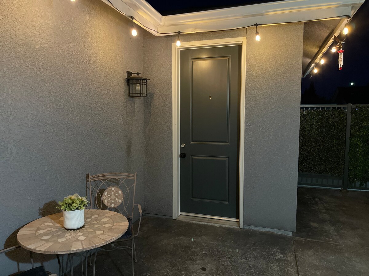 Notalega stúdíóið okkar með vel útbúnum eldhúskrók og rúmum fyrir þrjá. Stutt ganga að miðborg Exeter og stutt að keyra til Sequoia/Kings þjóðgarðanna, Kaweah-vatns og DT Visalia. Þú hefur aðgang að allri eigninni, veröndinni og bílastæðinu við götuna. Auðvelt að ganga að ýmsum veitingastöðum og verslunum. Exeter, syfjaður bær með krúttlegasta kaffihúsið, antíkverslanir og sérsniðnar tískuverslanir. Einföld 20 mínútna akstur að Kaweah-vatni og 30 mínútna akstur að aðalinngangi Sequoia/Kings-þjóðgarðsins.