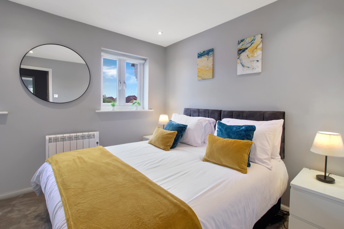 Stúdíóið er bjart og notalegt, nútímalegt rými sem er sjálfstæð breyting á hlið hússins okkar með sérinngangi og ókeypis bílastæði rétt fyrir utan. Airbnb er í 12 mínútna göngufjarlægð frá Hitchin-lestarstöðinni. Hún er tilvalin fyrir ferðamenn í London og er einnig tilvalin fyrir pör eða ferðalanga sem eru einir á ferð, fjölskylduferðir, viðskiptaferðir o.s.frv. Þú getur innritað þig frá kl. 16:00 mánudaga til föstudaga. Innritunartími á laugardegi og sunnudegi er kl. 14.30. Bílastæði eru ókeypis alla dvölina, alla daga vikunnar.