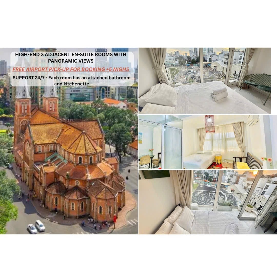 Wellcome to Cherry Blossom 3 adjacent rooms charmingly designed in Indochina style located in the diplomate area of D1, near US Consulate and Independence Palace. With artistic style, comfortable facilities, 3 adjacent rooms will fit perfectly for your group of 6 people. Windows, balconies and rooftop terraces have a panoramic view of the city. Cherry Blossom has crafted a haven, akin to the beauty, freshness and fragrance of a cherry blossom in spring, extending a warm welcome to its guests.