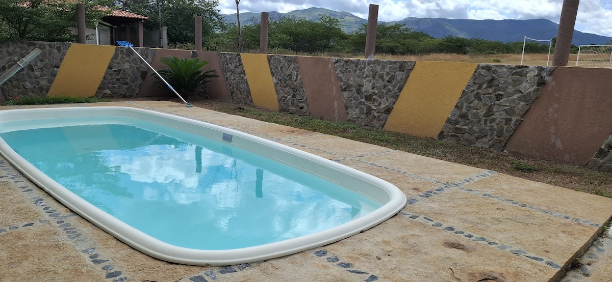 Slakaðu á með allri fjölskyldunni í þessu þægilega gistirými í ítölskum stíl. Skálinn er með garð, arineldsstæði og sundlaug, eingöngu fyrir þig. Staðsett í 3 mínútna fjarlægð frá miðborg Tianguá, svæði sem er þekkt fyrir fjölmargar náttúruperlur, svo sem almenningsgarða, útsýnisstaði, fossa og notalegt veðurfar allt árið um kring. Lágmarkshitastig er á bilinu 18 til 13,5°. Fullkomið loftslag til að fara í peysu, kveikja eld og fá sér gott vín.