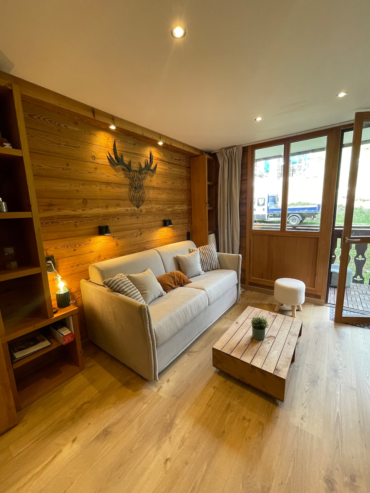 Þægilegt stúdíó með 3 stjörnum sem eru að fullu endurnýjuð. Ánægjuleg mjög björt stofa með nýjum 140 rúma svefnsófa og 1 sæta breytanlegum hægindastól. Flatskjásjónvarp. Nýtt eldhús með keramik helluborði, uppþvottavél, sameinuðum örbylgjuofni, brauðrist, katli, kaffivél, raclette vél, blandara, allt til að elda. Svalir verönd. Búseta staðsett 50 m frá brottför brekkanna og strætó hættir sem þjónar allri stöðinni fyrir frjáls 24 klukkustundir.