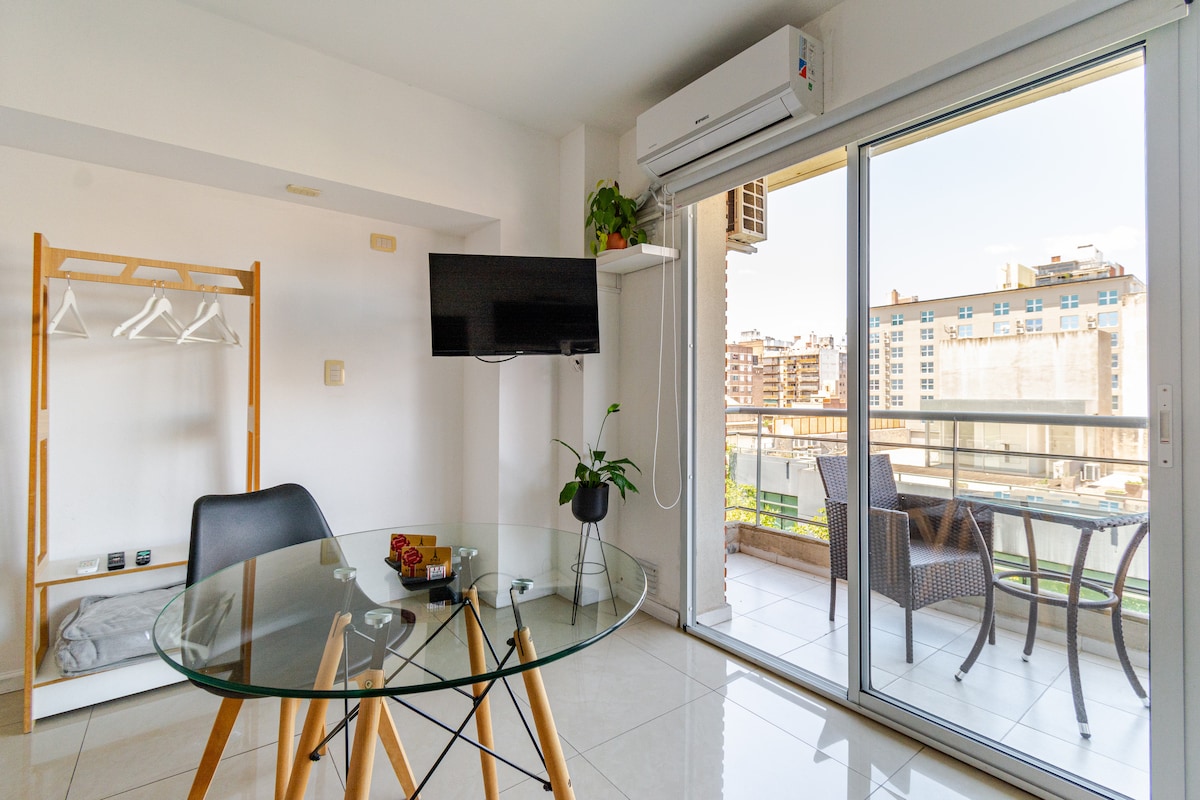 Mjög rúmgóð loftíbúð með óviðjafnanlegu útsýni yfir ána. Mjög loftræst, með náttúrulegri lýsingu og stórum svölum. Í henni er að finna allt sem þú þarft til að láta þér líða eins og heima hjá þér og ekkert vantar. Miðsvæðis, í hjarta Rosario, 1 húsaröð frá Parque España, metra frá Paraná ánni og nokkrum húsaröðum frá þjóðminjasafninu að fánanum. Svæðið er umkringt börum og næturlífi. Það er með kapalsjónvarpi.